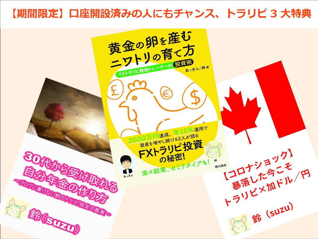 2020年6月在庫が無くなるまでの期間限定でトラリピの口座開設特典がパワーアップしました!!
