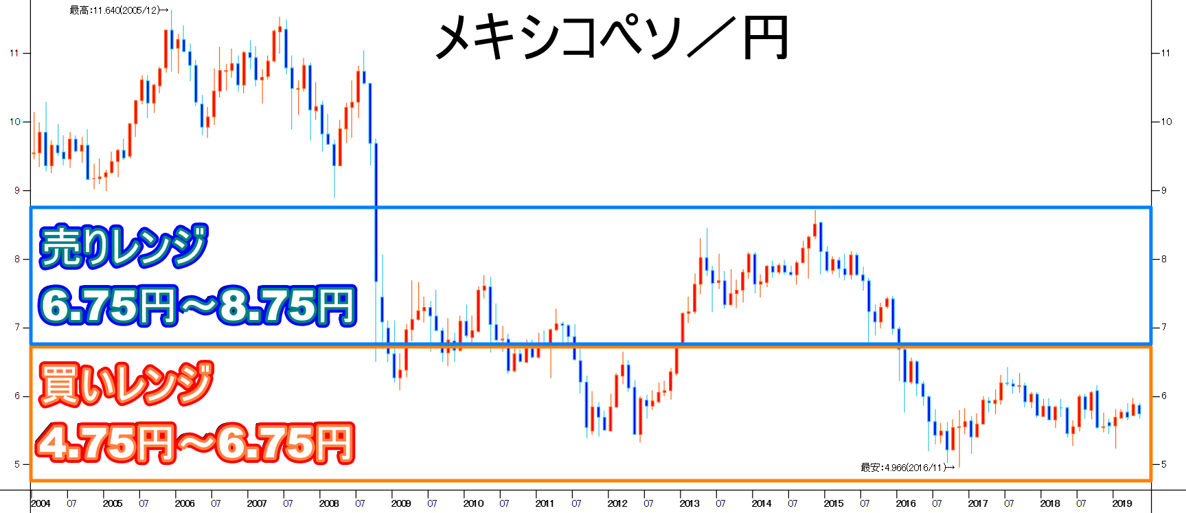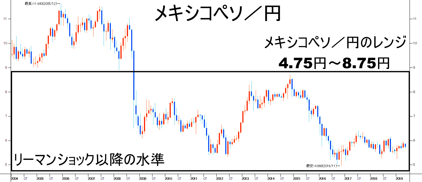 ▼メキシコペソ/円チャート(2005年~)