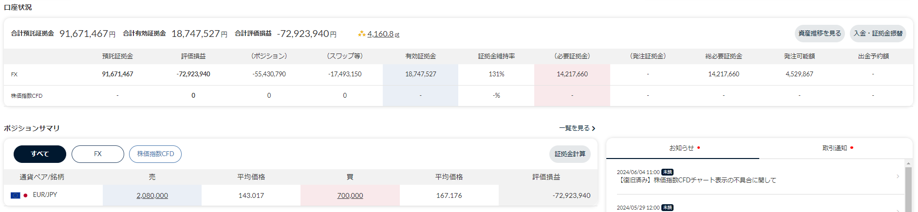 入金&ヘッジで耐えていますが、全くキャシュフローを生まない上にマイナススワップで削られていくので、精神的にかなりキツイ状況です。