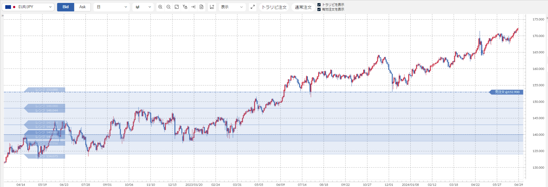 - ユーロ/円:売りトラリピ