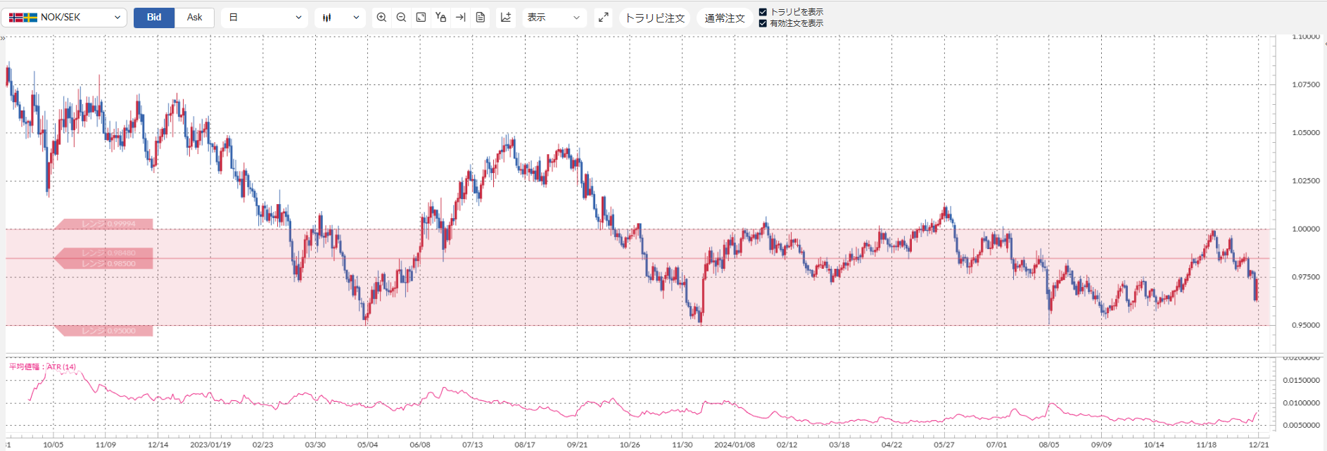 ⇒想定高値レート175円⇒165円⇒168円(テクニカル) - NOK/SEK:買いトラリピ