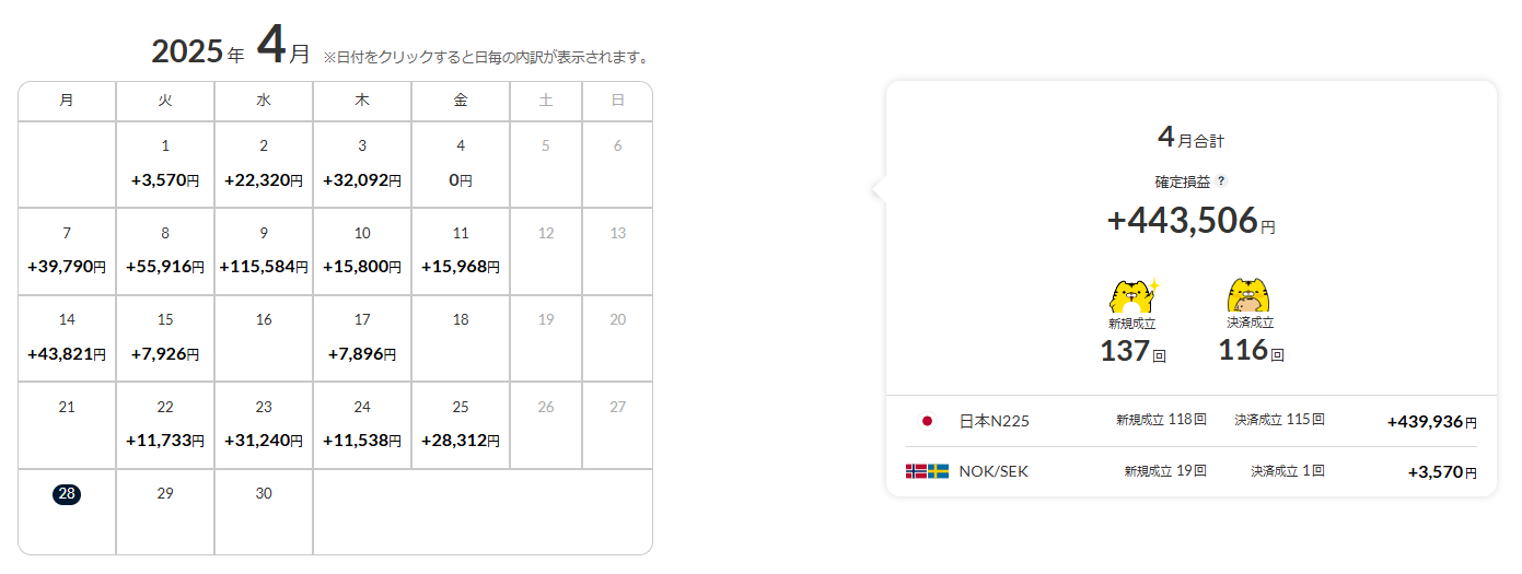 4月21日週のトラリピナローレンジ戦略の利益は82,823円でした(^^♪