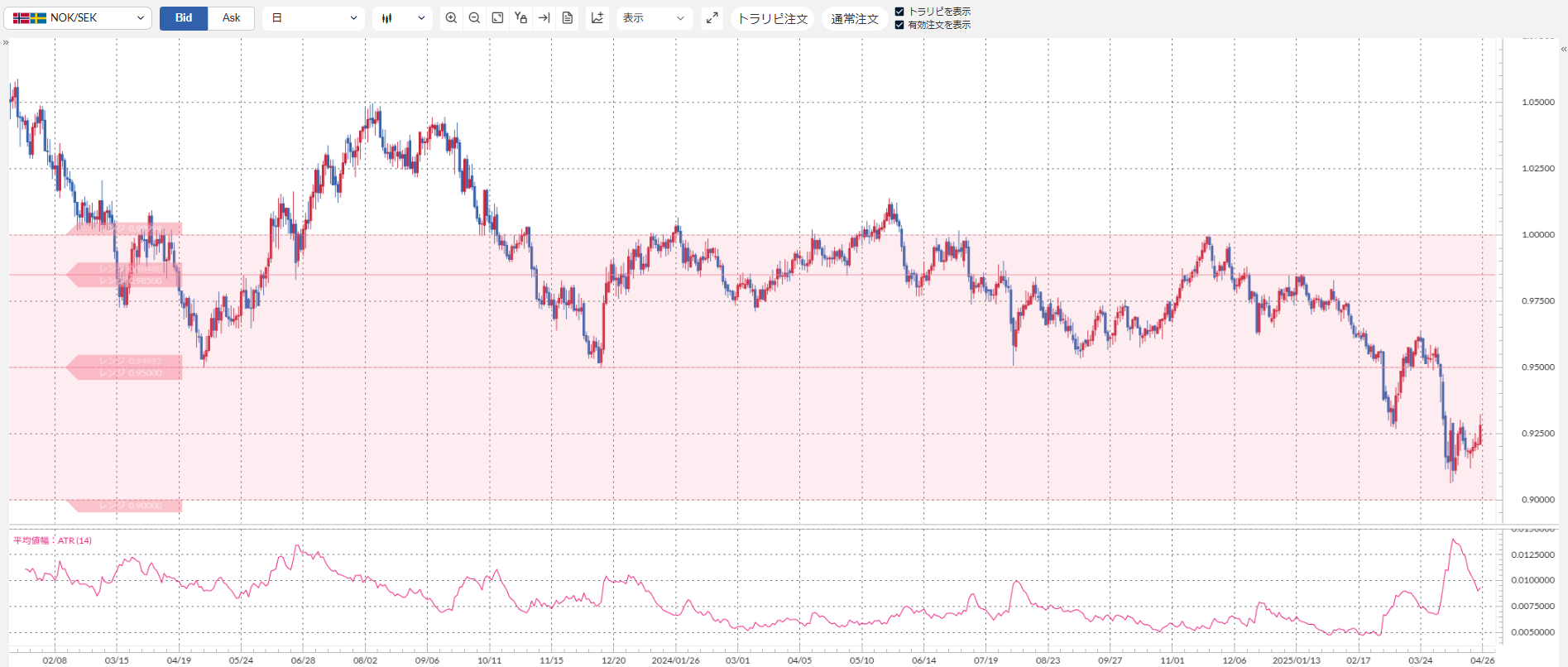⇒想定高値レート175円⇒165円(テクニカル) - NOK/SEK:買いトラリピ