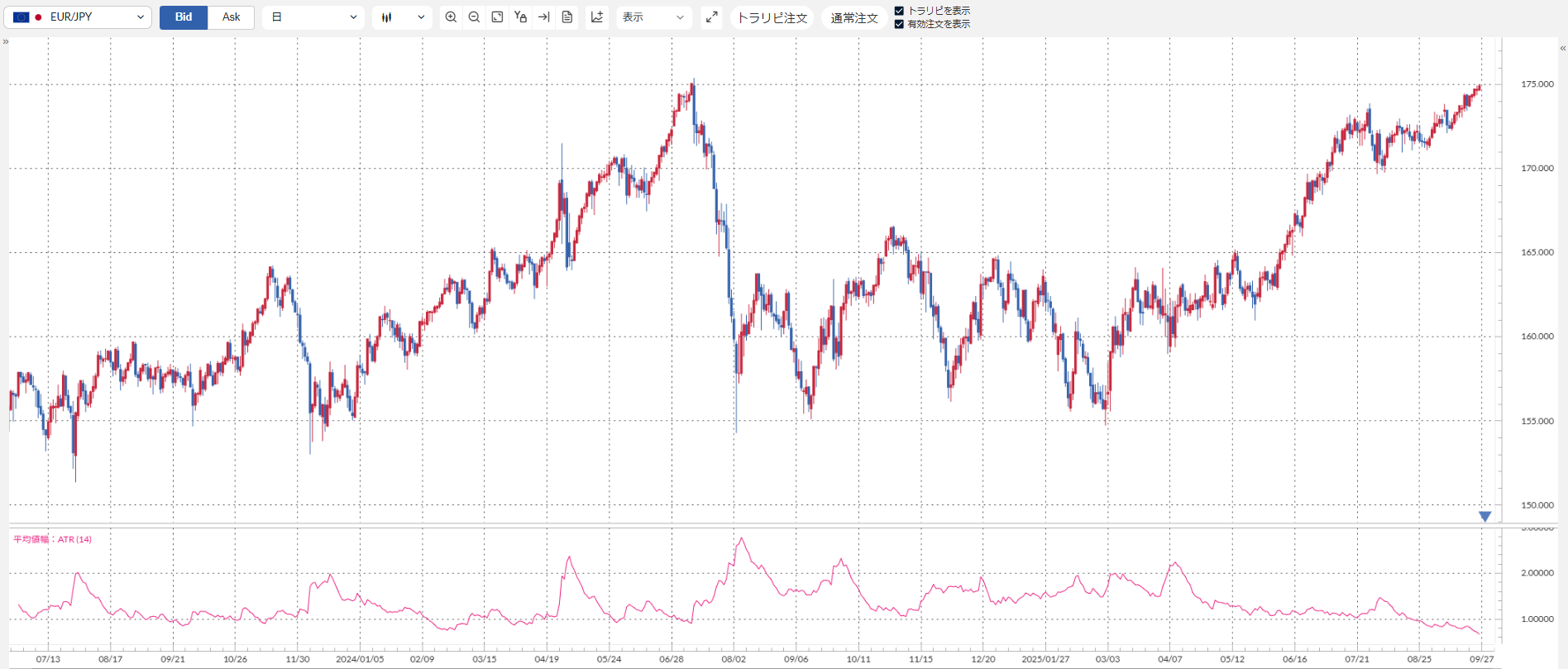 ⇒想定高値レート175円⇒165円⇒175円(テクニカル)