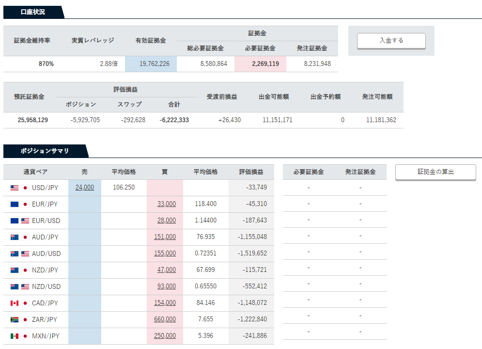 | USD/JPY | 18,550円 | 1,444,039円 | -33,581円 |
