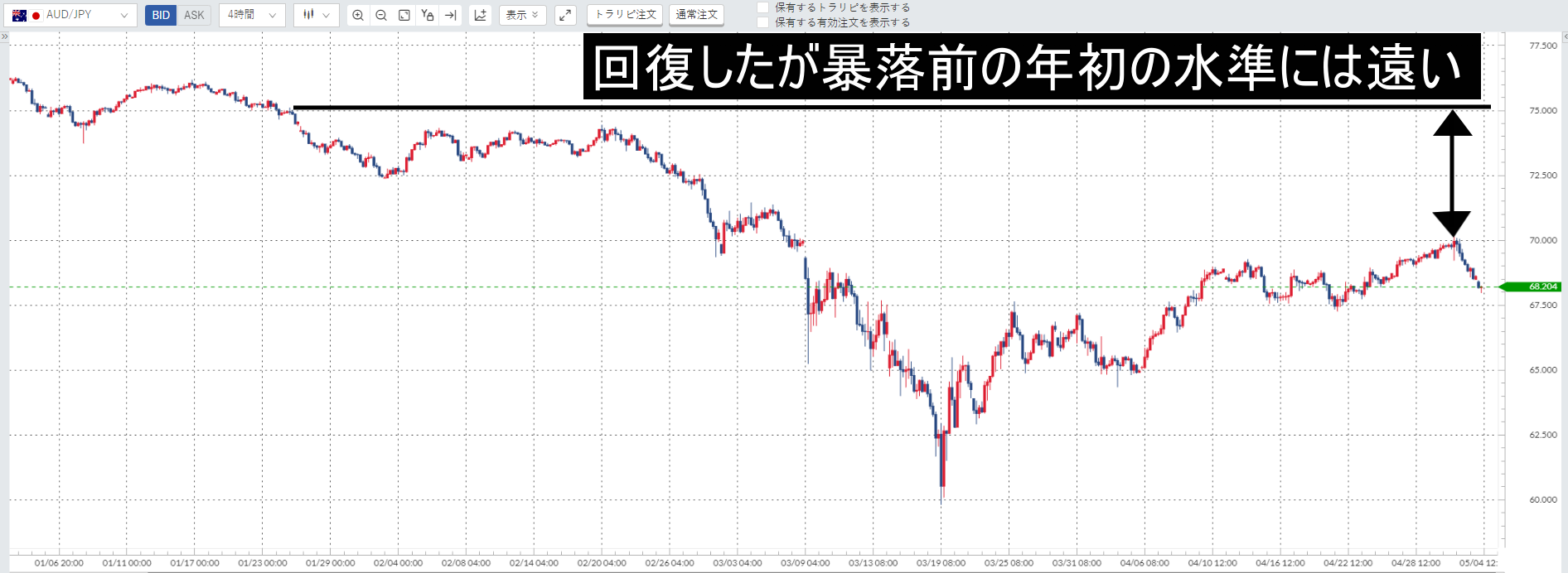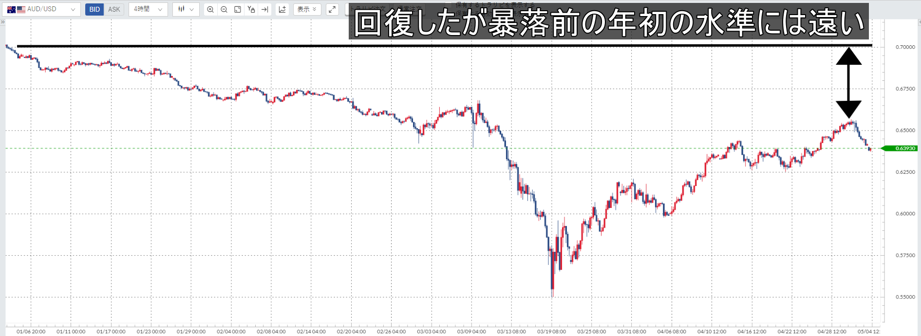 ただし、コロナの影響が完全になくなったかと言えばそんなことは無く、多くの通貨ペアでは未だ暴落前の年初の水準には戻っていません。