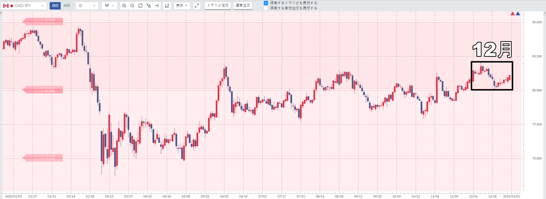 - 加ドル/円:上昇傾向と判断 ⇒買いトラリピ