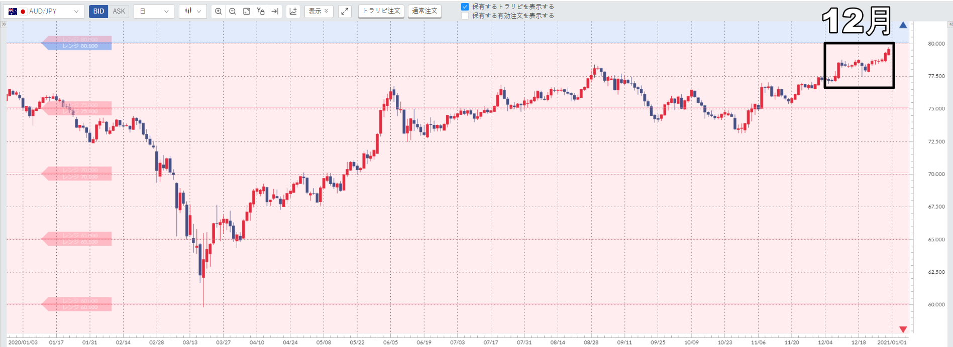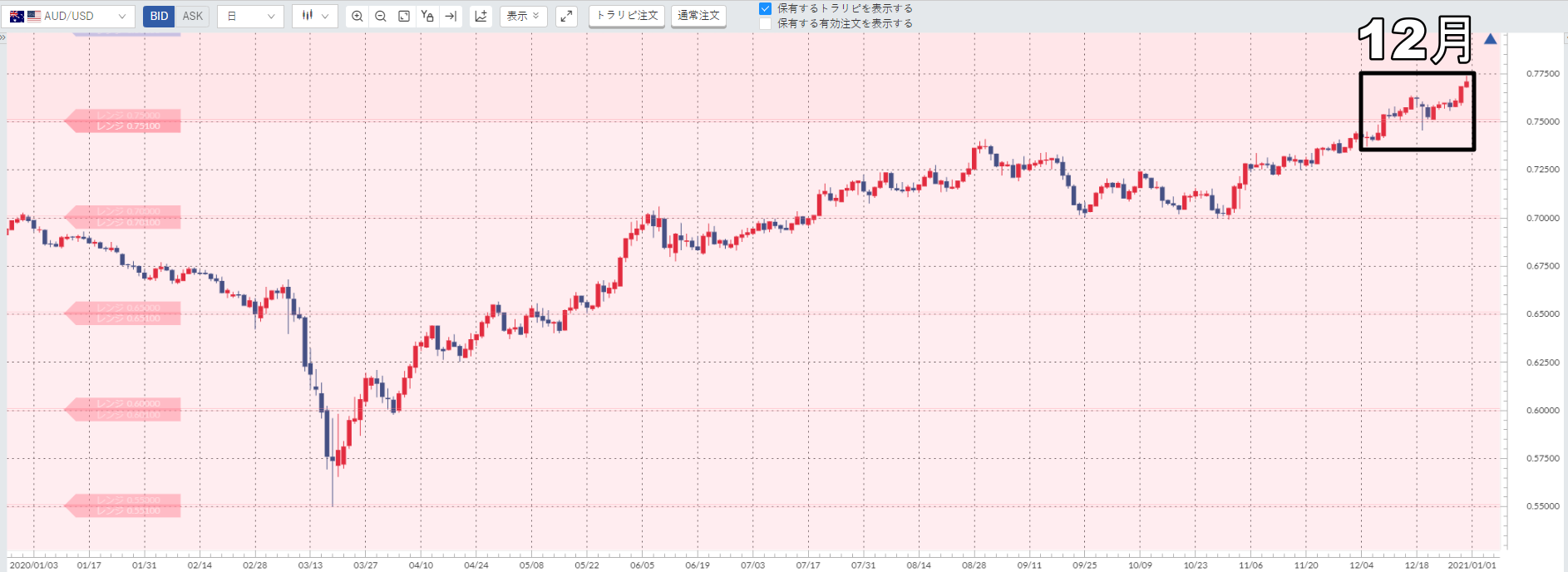 2020年はコロナショック時以外、非常に穏やかな値動きでした。