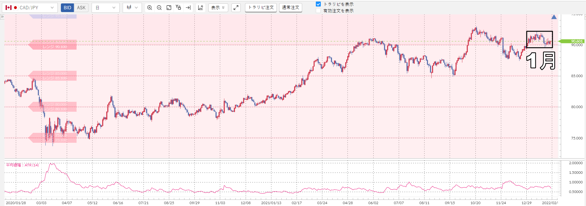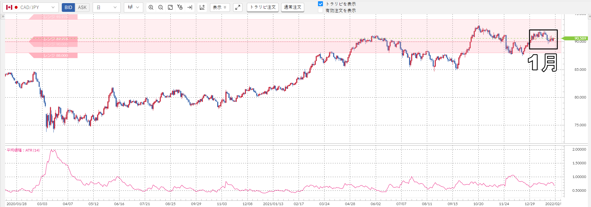 また、もし相場を予想して攻めたいなら、この「初心者向けのワイドレンジ」で無理するのではなく、このあとの章で説明する「上級者向けのナローレンジ」を参考にしてください。