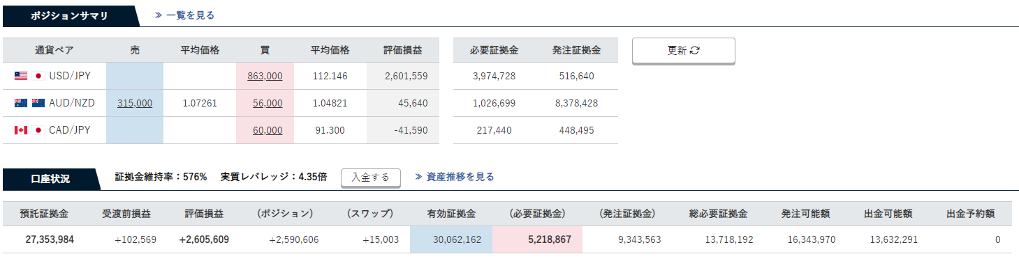 | AUD/NZD | 335,623円 | 4,984,545円 | -229,186円 |