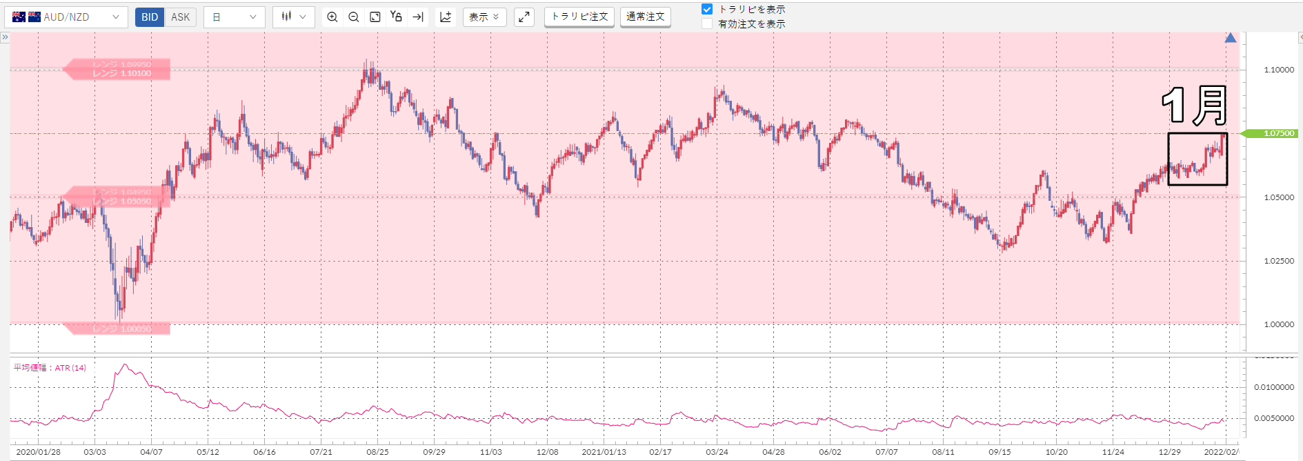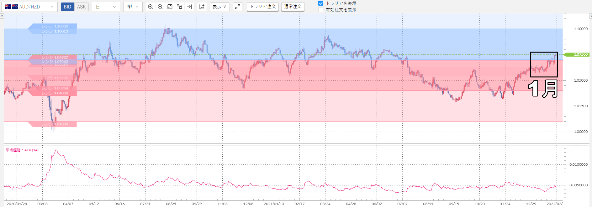 ただ、豪ドル/NZドルは下目線と考えていたので、このタイミングで1.07を超えて売りレンジに突入する展開は予想していませんでした。