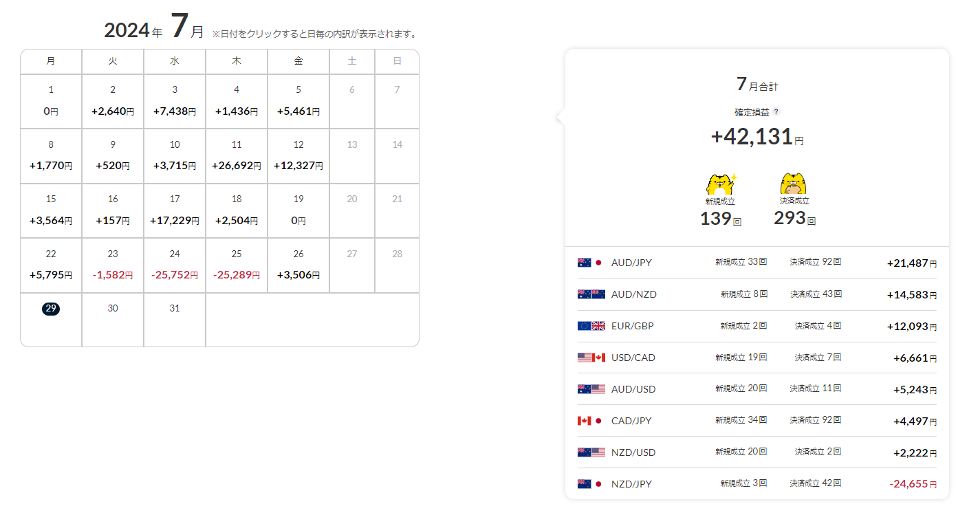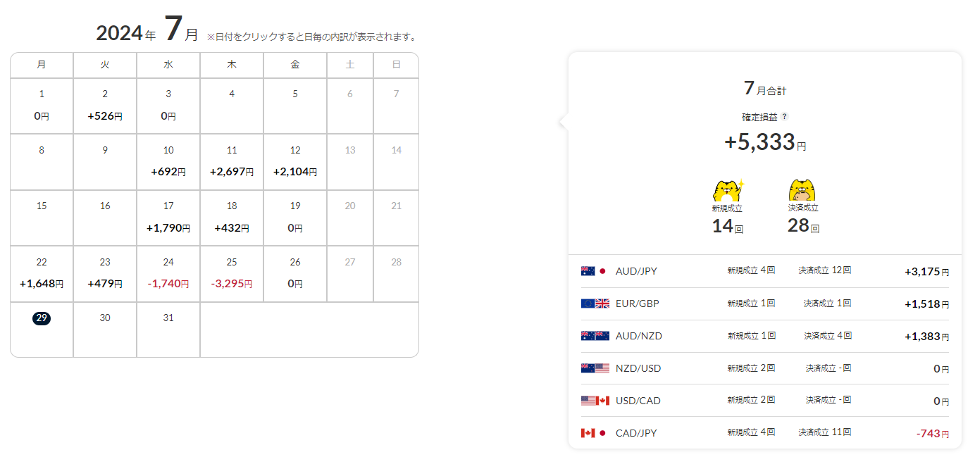 また、今回はナローレンジの相場観に引っ張られて両建てを先延ばしにしてしまった感があるので、EUR/JPYではなくAUD/JPYやCAD/JPYが極端に上昇した場合は不本意ですが追加入金になりそうです。
