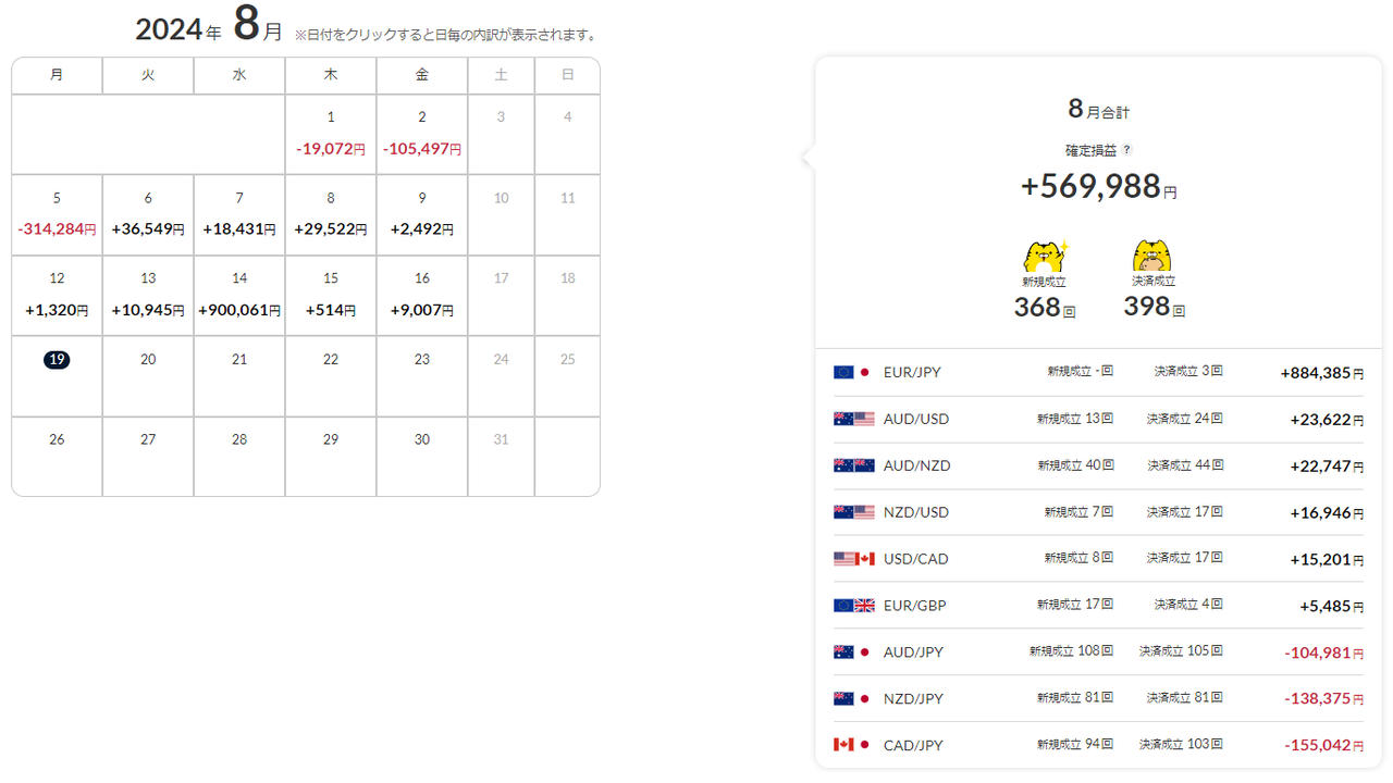 | EUR/JPY | 3回 | 884,385円 |
