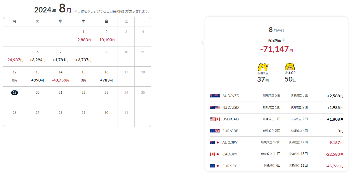 | AUD/NZD | 17回 | 8,800円 |