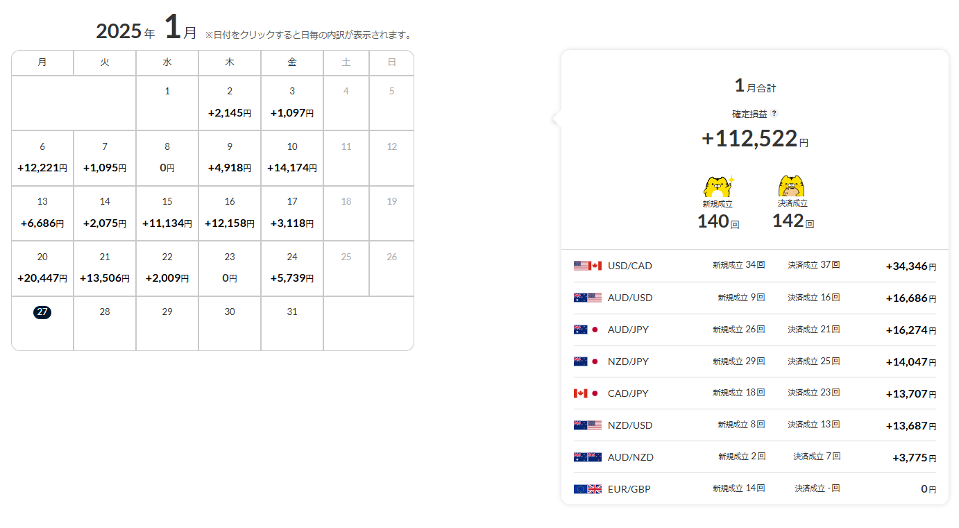 | USD/CAD | 24回 | 22,681円 |