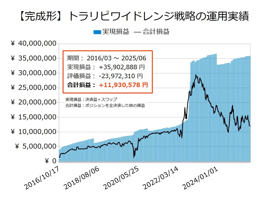 まずは2,000万円で運用しているトラリピワイドレンジ戦略の完成形の結果です。