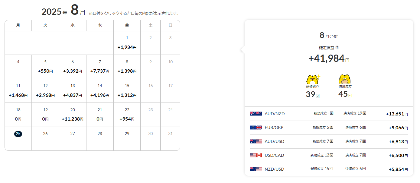 クロス円の売りポジションが全て決済されるまでは厳しい状況が続きます……分かっていたこととは言え、いざマイナス決済が続くと辛いですね(;'∀')