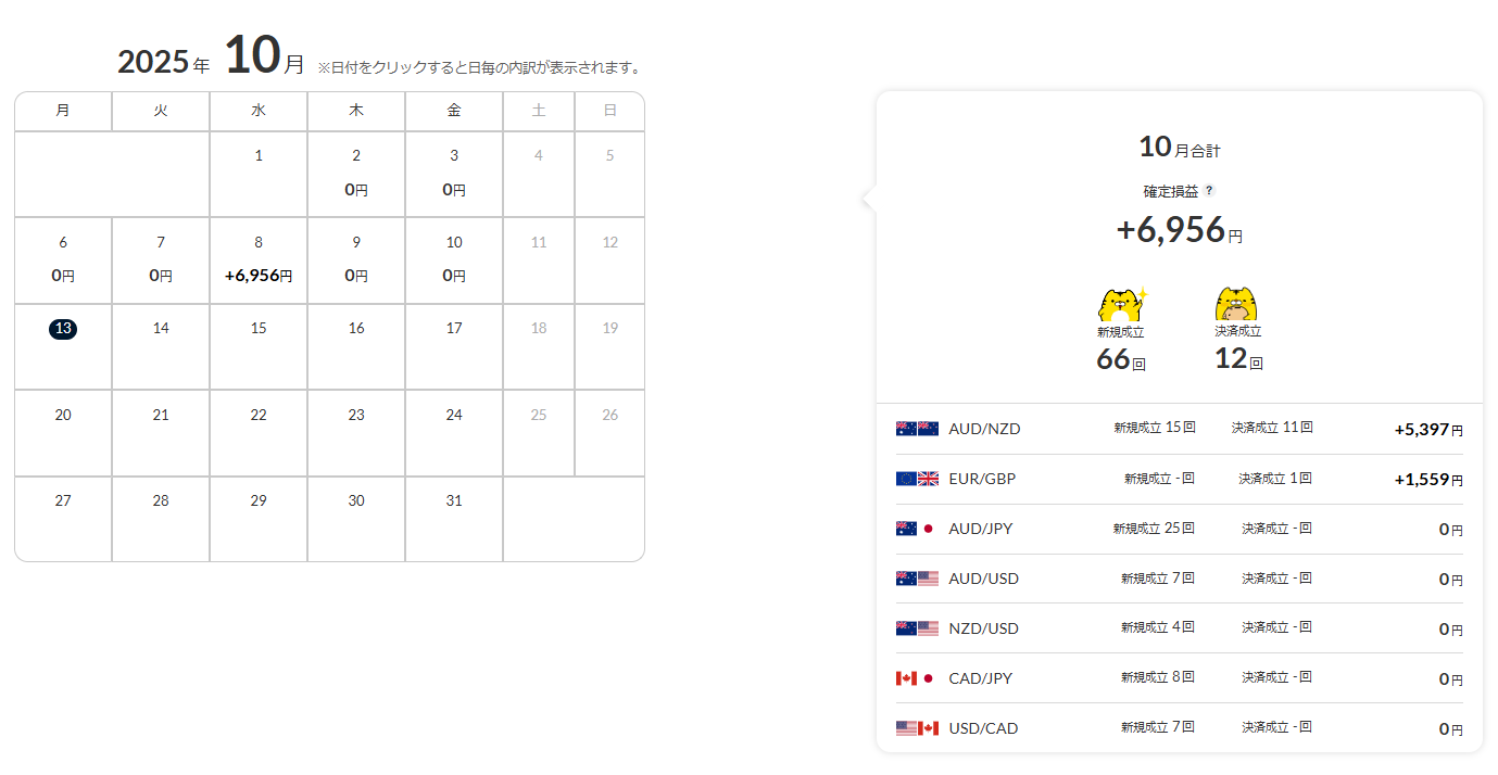 | AUD/NZD | 11回 | 5,397円 |