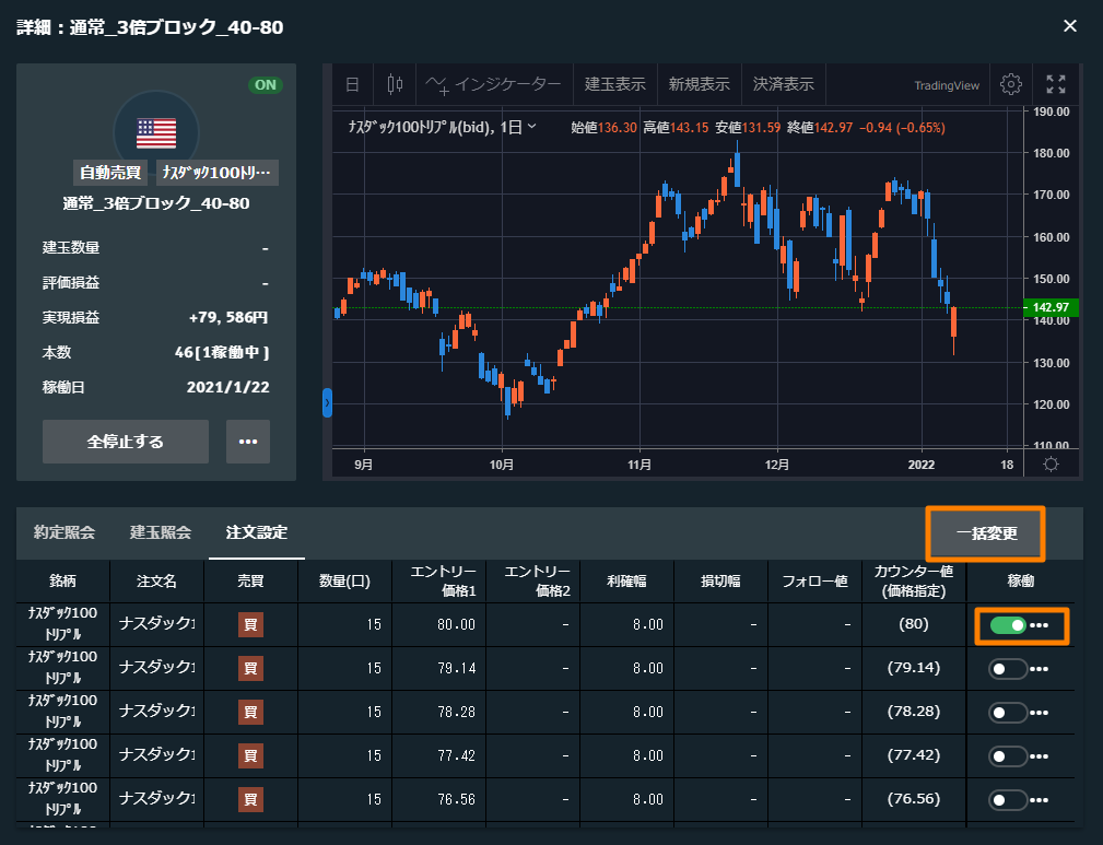 ※全ての自動売買が停止されていると一括変更が使えないので、一つだけ稼働