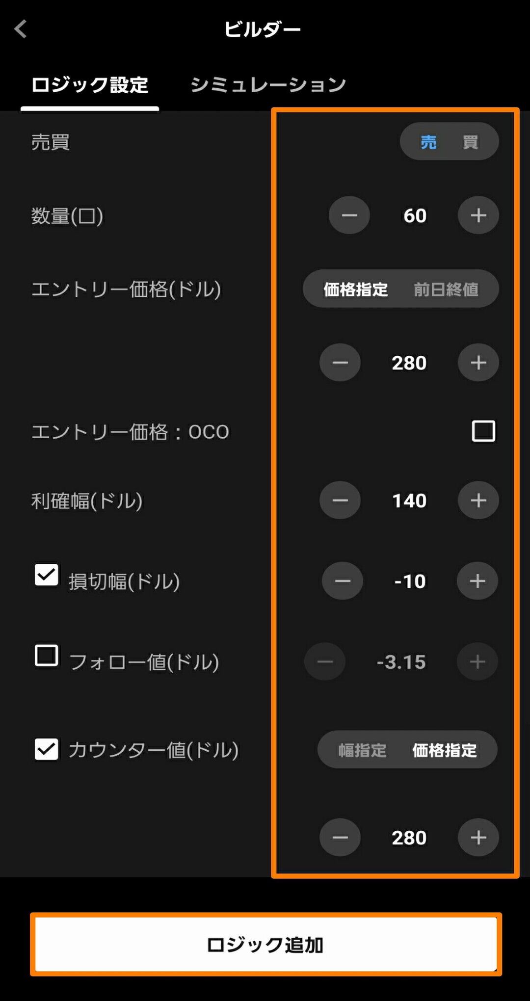 あと、損切りは6ドルにしようと思ったのですが、入力の制限に引っ掛かったので、とりあえず最狭の10ドルにしました(^_^;)