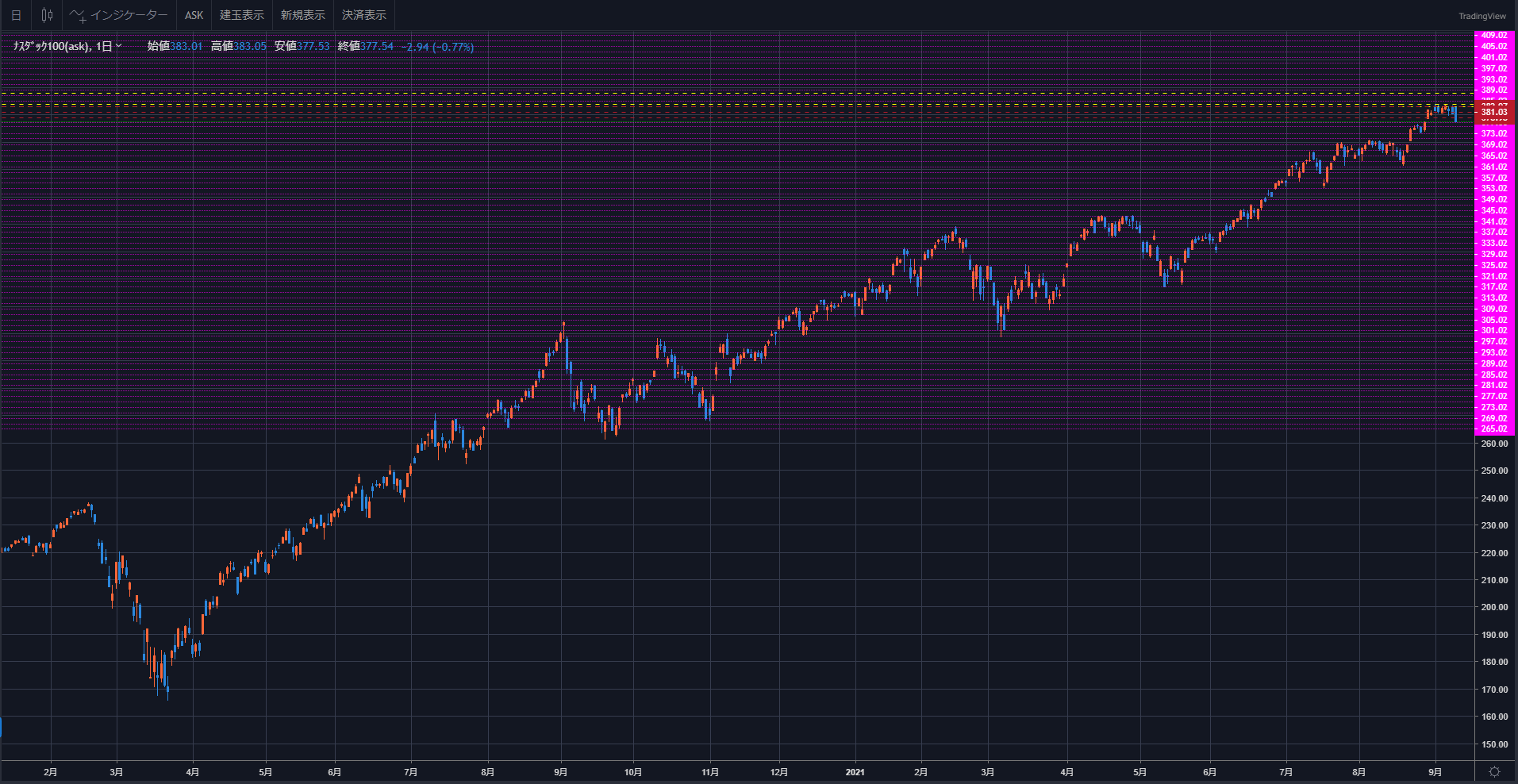 2021年7月まではナスダック100トリプル(TQQQ)の戦略一本で運用していましたが、8月からはナスダック100(QQQ)の戦略も併用しています。