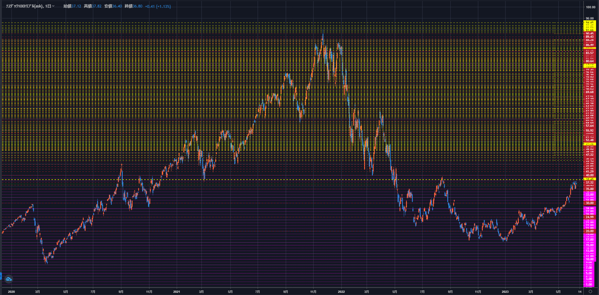 ▼ナスダック100トリプル(TQQQ)のチャート