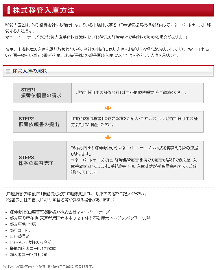 マネーパートナーズには今のところ、代用有価証券サービスのLP(紹介ページ)が無いんですよね……