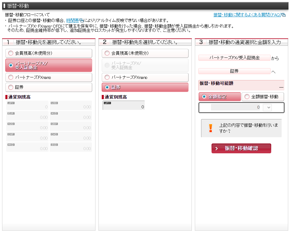 - 現金余力(銀行口座)を一時的に証券口座に入金