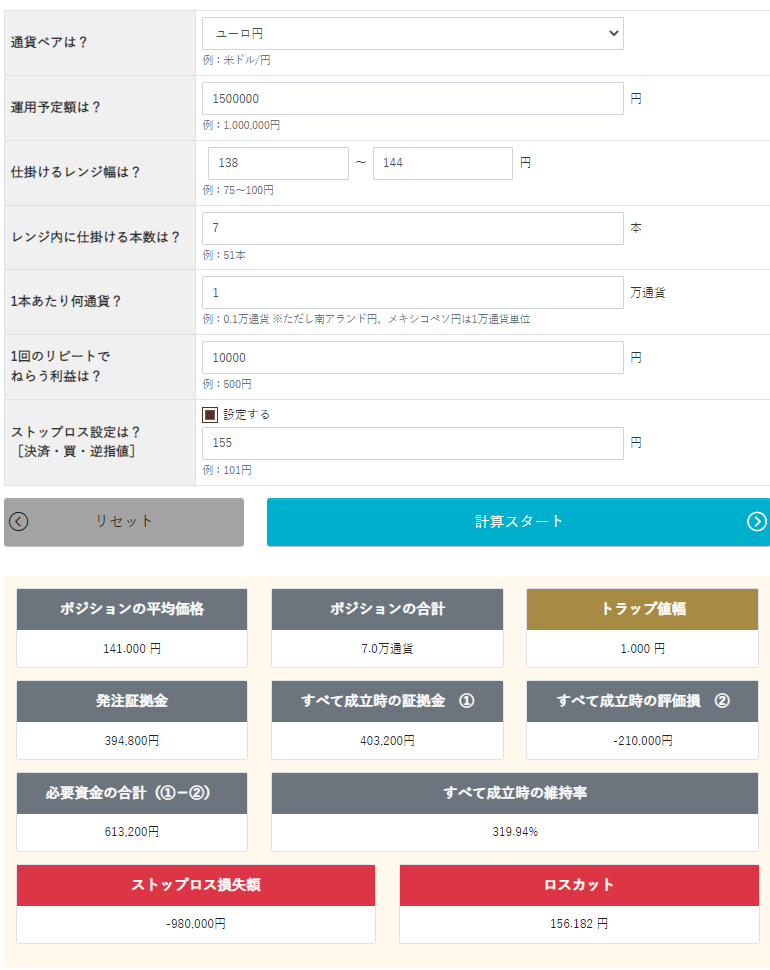 ロスカットレートを160円⇒155円に変更したり、注文間隔を変えたりと、色々シミュレーションしてみてください!!
