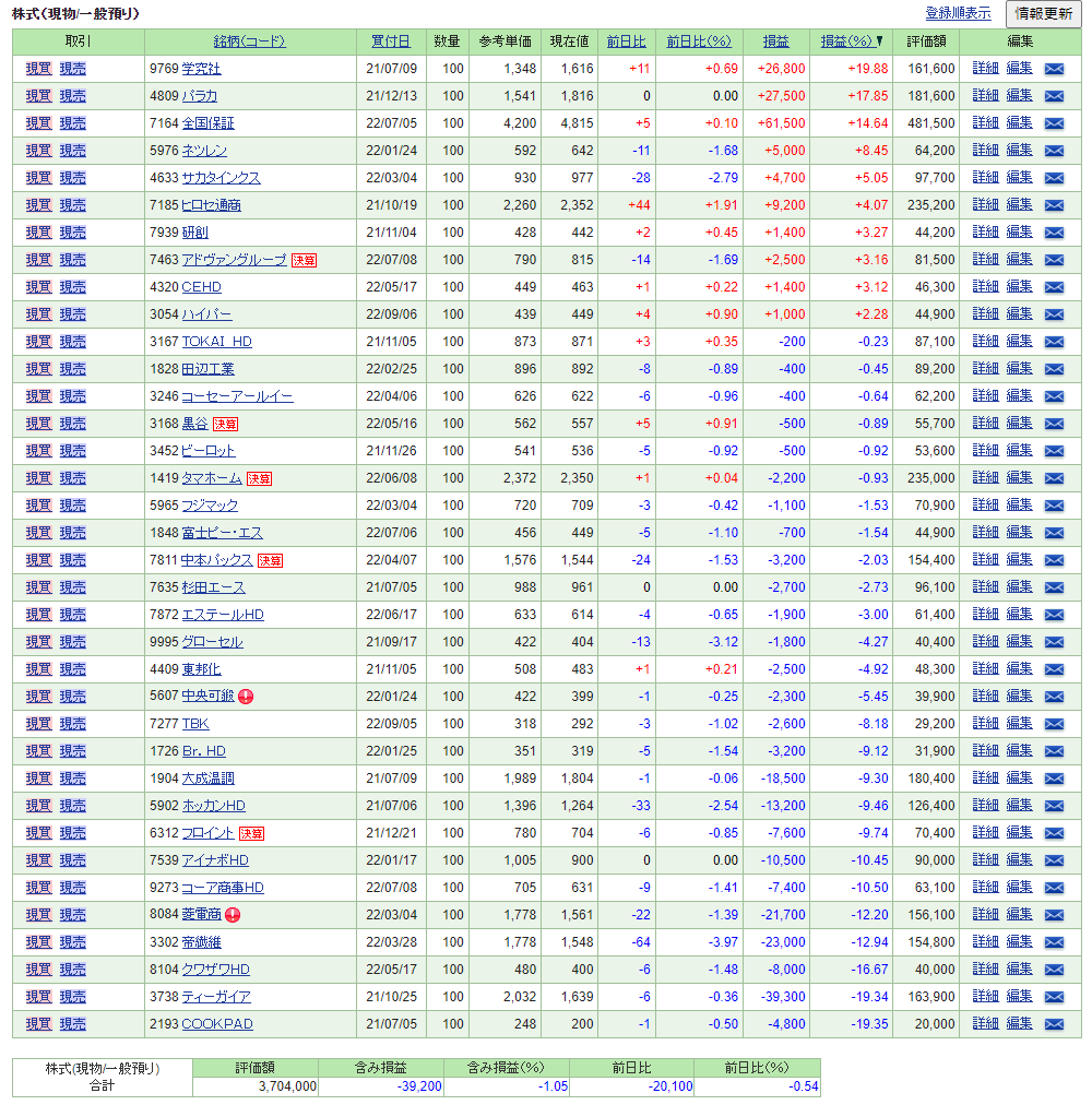 | 優待株 | 0円 | 68,698円 | -39,200円 |